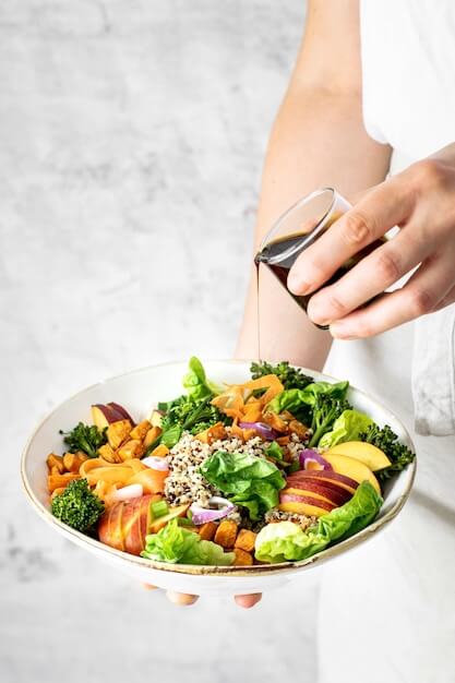 <a href="https://kr.freepik.com/free-photo/woman-pouring-pumpkin-seed-oil-over-sweet-potato-buddha-bowl_13 311288.htm#query=%EC%83%90%EB%9F%AC%EB%93%9C&position=22&from_view=search&track=sph"> 작가 rawpixel.com </a> 출처 Freepik