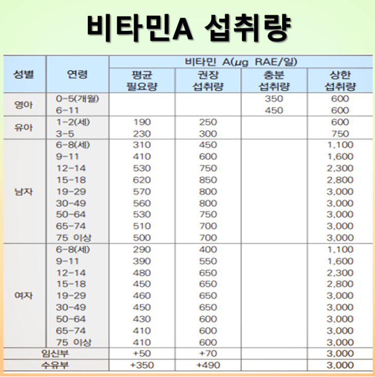 비타민A는 우리 몸에 꼭 필요한 영양소이지만 과다 섭취하면 부작용이 있으므로 주의해서 적정 권장량을 섭취해야 합니다.